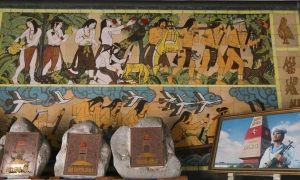 Trong đền có bức tranh sơn dầu cỡ lớn về khu di tích lịch sử Đền Hùng ở thôn Cổ Tích, xã Hy Cương, TP Việt Trì, tỉnh Phú Thọ. Cạnh đó là bảng chữ viết tay sơn đỏ về nguồn gốc dân tộc Việt Nam cùng nhiều bức hoành phi câu đối khơi gợi truyền thống uống nước nhớ nguồn của dân ta.