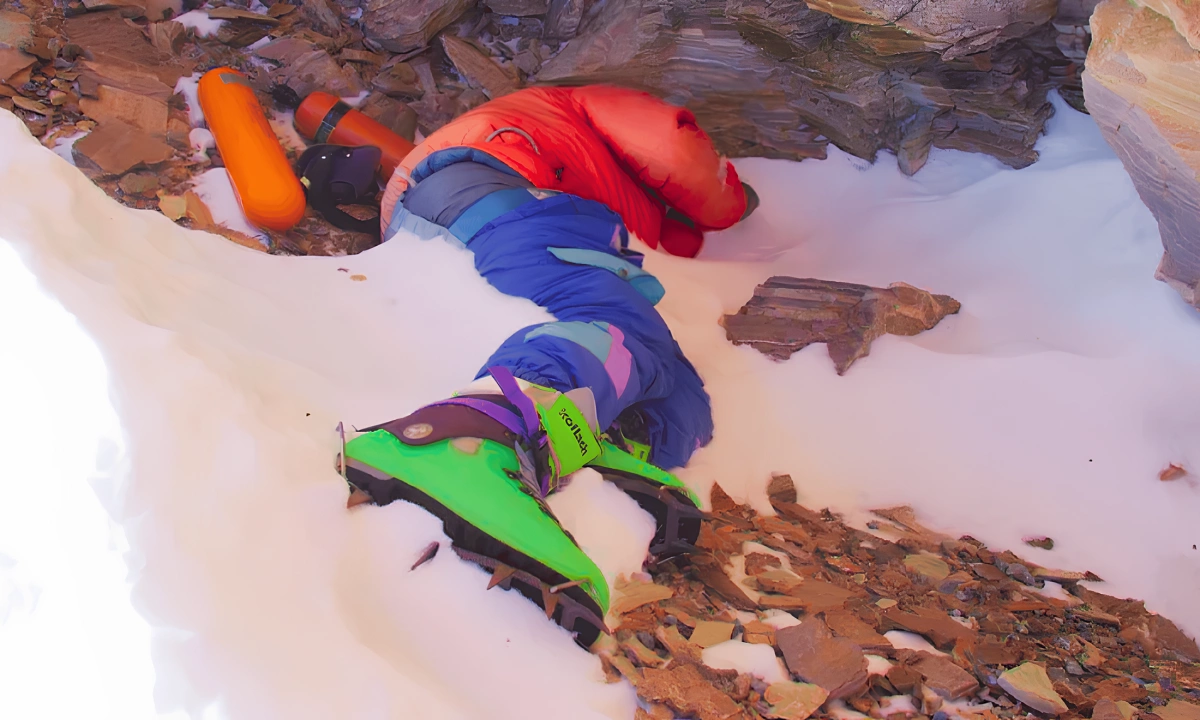 David Sharp: Năm 2006, David Sharp thực hiện chuyến leo núi một mình. Một số nguồn tin nói anh đã chinh phục thành công đỉnh nhưng điều này vẫn chưa được xác minh. Sharp không bao giờ trở về để kể lại câu chuyện của mình. Thi thể của anh được tìm thấy bên cạnh "Green Boots" trong một hang động nhỏ. Một số phỏng đoán cho rằng anh dừng lại để nghỉ ngơi hoặc trú ẩn và chết cóng tại chỗ. Ảnh: All That's Interesting