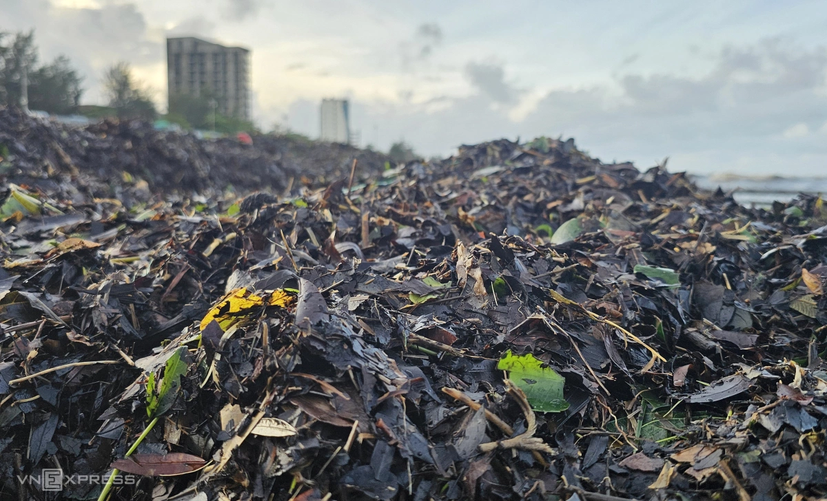 Rác tấp dày đặc thành từng lớp dọc bãi biển, gây ô nhiễm môi trường, mất mỹ quan và ảnh hưởng đến hoạt động du lịch. Thành phần rác chủ yếu là lục bình, cây cỏ, cành lá khô, xốp, chai nhựa, vỏ đồ uống…