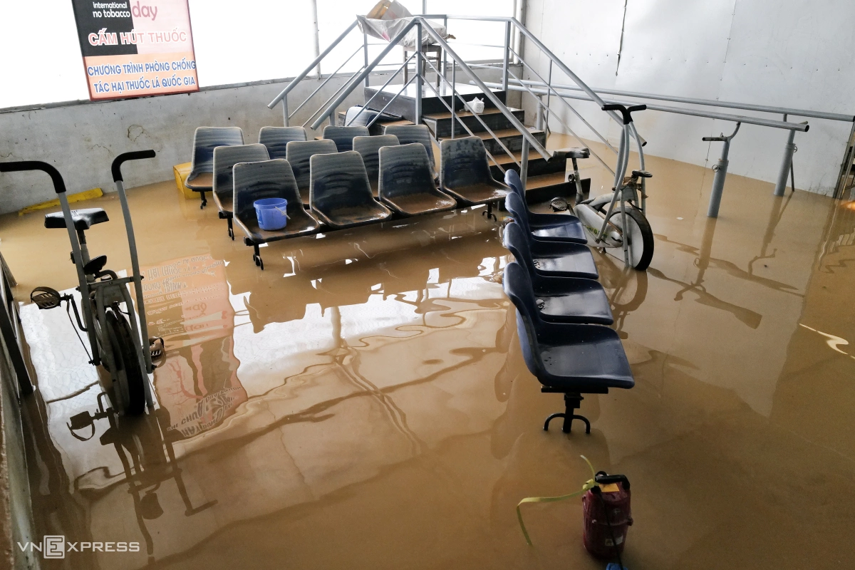Nhiều thiết bị giá trị ở tầng một được bảo vệ bằng các bao cát chắn cửa nên lũ không tràn vào. Tuy nhiên, máy chụp CT này do nặng, không kịp chuyển nên đã bị ngập. Hiện cán bộ đang kiểm tra, đánh giá tình trạng hoạt động của máy.