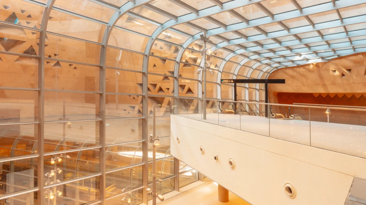 Ga Qasr Al Hokm có diện tích hơn 22.000 m2, sâu 40 m và gồm 7 tầng, 17 thang máy, 46 thang cuốn. Mái vòm thép không gỉ của nhà ga uốn cong phản chiếu hình ảnh khu phố xung quanh, tạo nên sự giao thoa giữa lịch sử và hiện đại.