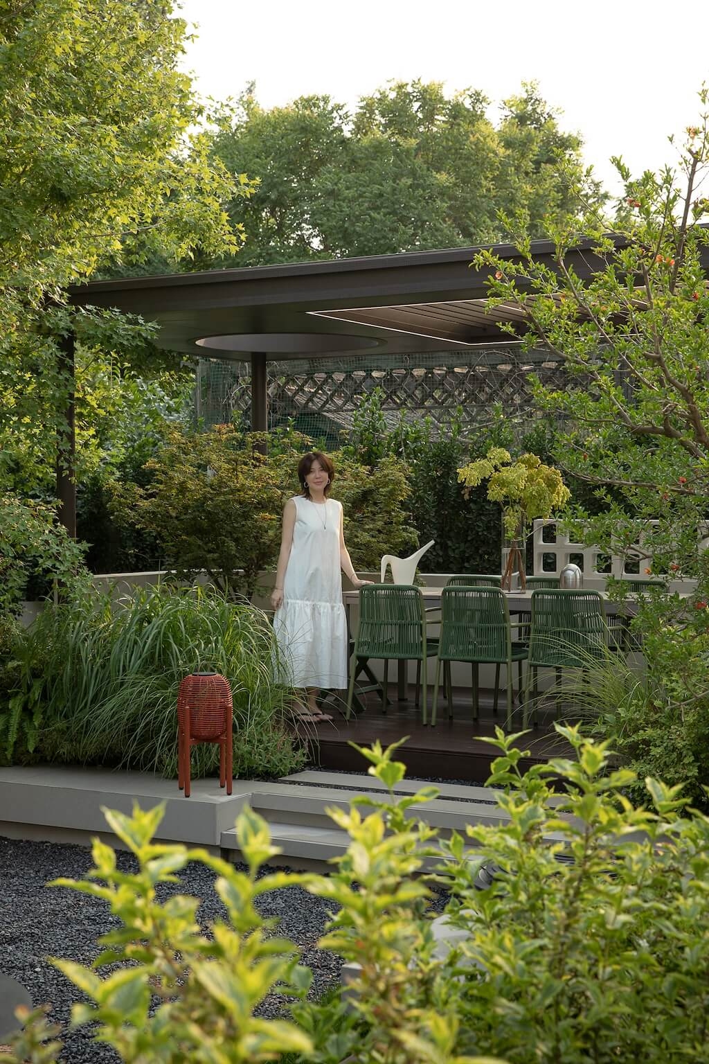 Nữ gia chủ là nhà sáng lập một thương hiệu thời trang, chuyển đến đây để tìm không gian yên tĩnh sau nhiều năm sống và làm việc ở trung tâm thành phố. Mỗi buổi sáng, cô mặc trang phục do chính mình thiết kế, tận hưởng không khí trong lành ở nơi mình sống.
