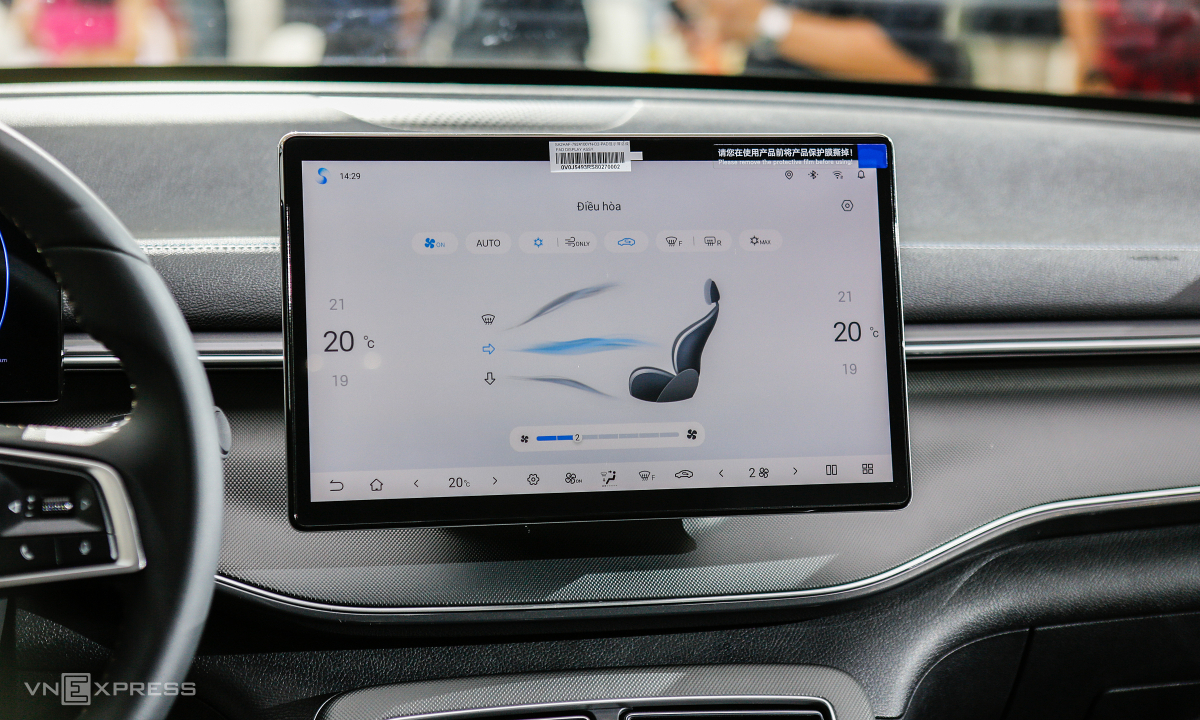 Màn hình cảm ứng giải trí 12,8 inch đặt nổi, hỗ trợ kết nối không dây Apple CarPlay/Android Auto. Hỗ trợ và nhận diện giọng nói tiếng Việt.