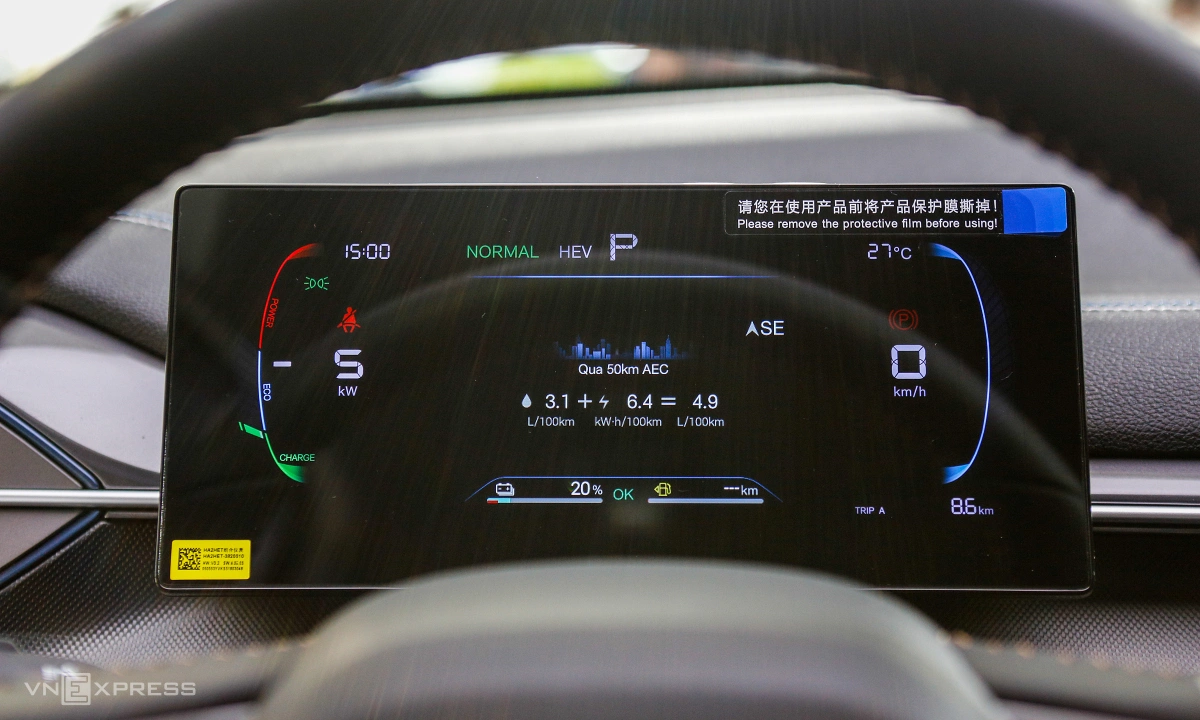 Nuôi môtơ điện là khối pin LFP 18,3 kWh với phạm vi hoạt động thuần điện công bố 120 km. Kết hợp cả máy xăng, môtơ điện, Seal 5 có thể di chuyển quãng đường 1.200 km, theo thử nghiệm của hãng.