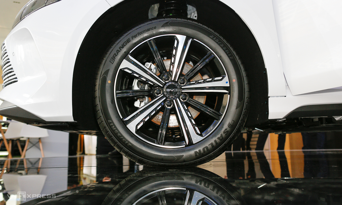 Bánh xe với vành 17 inch phay xước hai tông màu thiết kế đa chấu.