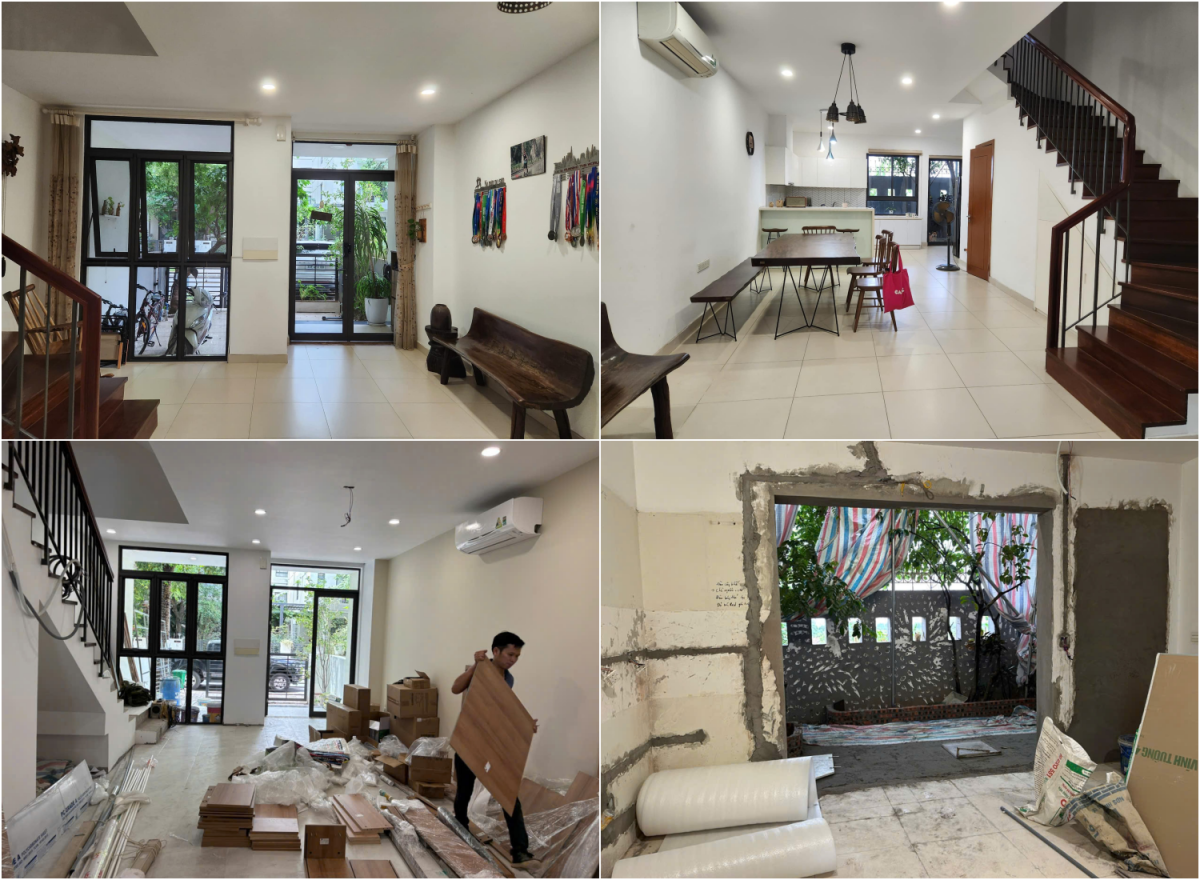 Hiện trạng ban đầu của căn nhà là tường bong tróc, thấm dột tại tầng một, sân thượng và khu vệ sinh. Hệ thống điện và nước cũ, bố cục không gian thiếu sáng, công năng chưa phù hợp với sinh hoạt của đại gia đình. Gia chủ mong muốn cải tạo toàn diện, sử dụng ổn định trong 10-15 năm với tiêu chí thẩm mỹ hài hòa, kỹ thuật bền vững và tổ chức không gian linh hoạt.