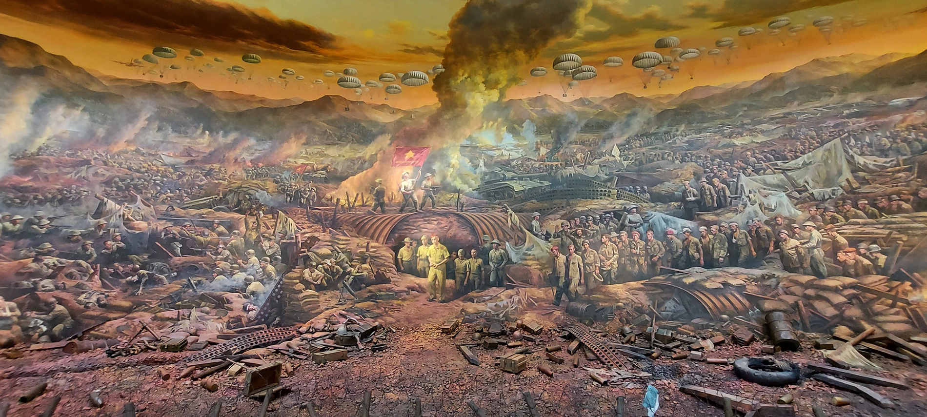 Điểm nhấn đặc biệt ở đây là bức tranh panorama có hơn 4.500 nhân vật, chiều dài 132 m, cao 20,5 m, đường kính 42 m, phần đắp nổi 6 m, tổng diện tích hơn 3.200 m2. Tranh được vẽ sơn dầu trên nền vải toan từ tháng 11/2019 và hoàn thành giai đoạn 1 tháng 5/2021, với sự tham gia của khoảng 100 họa sĩ. Các giai đoạn của Chiến dịch Điện Biên Phủ năm 1954 được thể hiện liên hoàn và ấn tượng qua từng nét vẽ.