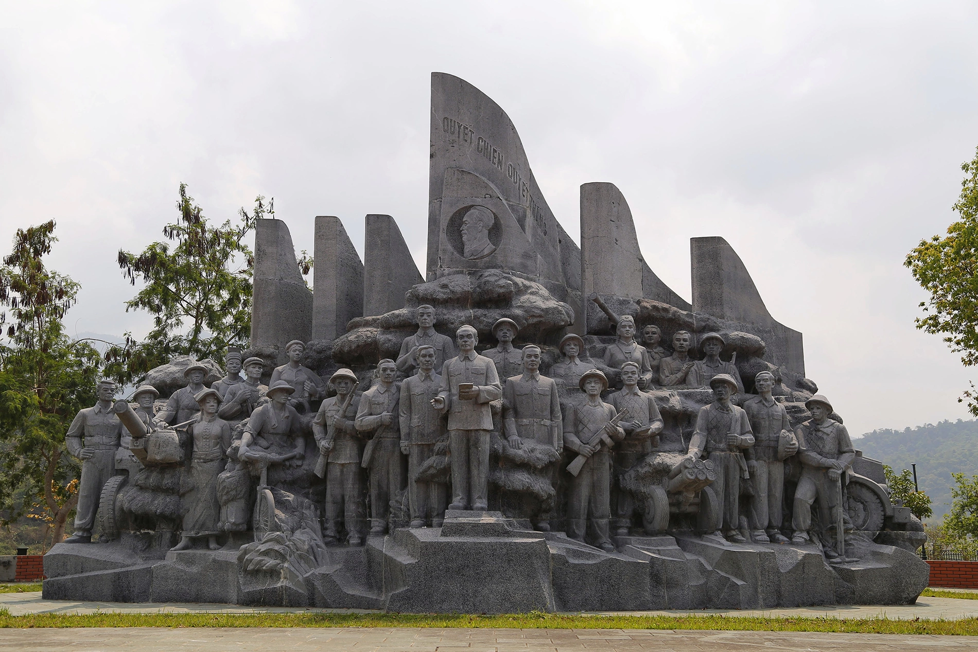 Tượng đài được khánh thành vào ngày 7/5/2004 nhân kỷ niệm 50 năm ngày chiến thắng Điện Biên Phủ. Công trình tọa lạc trên đồi D1, ngay trung tâm thành phố. Cụm tượng đài là nhóm tượng đồng cao, to và nặng nhất Việt Nam từ trước đến nay. Tượng có chiều cao 12,6 m được đúc bằng 217 tấn đồng.