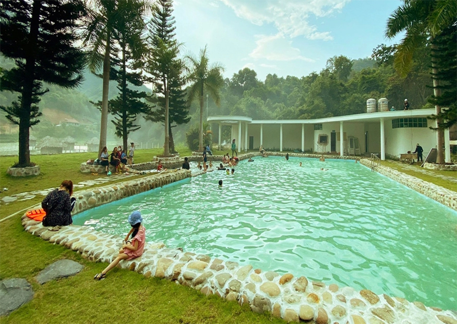 Nếu muốn ngâm khoáng nóng, du khách nên ngâm vào lúc sáng sớm hoặc vào buổi chiều. Sau khi tắm xong, có thể tham gia các hoạt động giải trí khác như: chơi tennis, đạp xe, đánh cầu lông, thưởng thức văn nghệ từ những người dân tộc Dao, H’Mông. Giá vé vào cửa tùy vào dịch vụ dao động từ 20.000 đồng đến 120.000 đồng một khách. Dịch vụ nhà sàn dao động từ 120.000 đến 220.000 đồng một phòng.