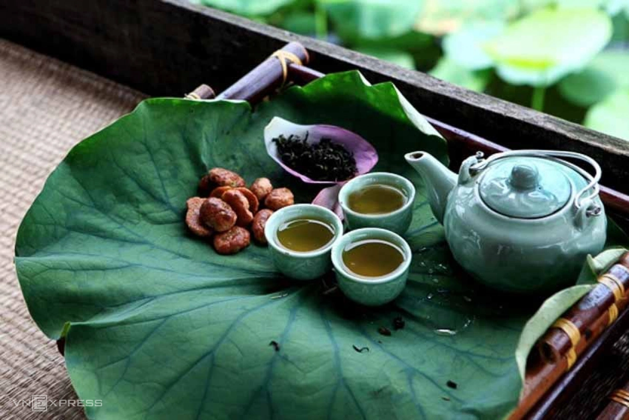 Trà sen: Trà sen Tây Hồ chắc chắn sẽ là món quà quý dành cho người thân và bạn bè sau khi ghé thăm Hà Nội. Bởi ướp trà sen là cả nghệ thuật với rất nhiều thời gian, công sức. Những cánh chè khô sau khi đã được tuyển chọn từ loại ngon nhất, sẽ được ướp 5-7 lần cùng gạo sen (hạt trắng trên đầu nhị sen) cho thấm hương ngấm vị. Sen được ướp phải là loại được trồng trong các đầm ở Hồ Tây như Nhật Tân, Quảng Bá bởi thơm và cho nhiều gạo nhất.