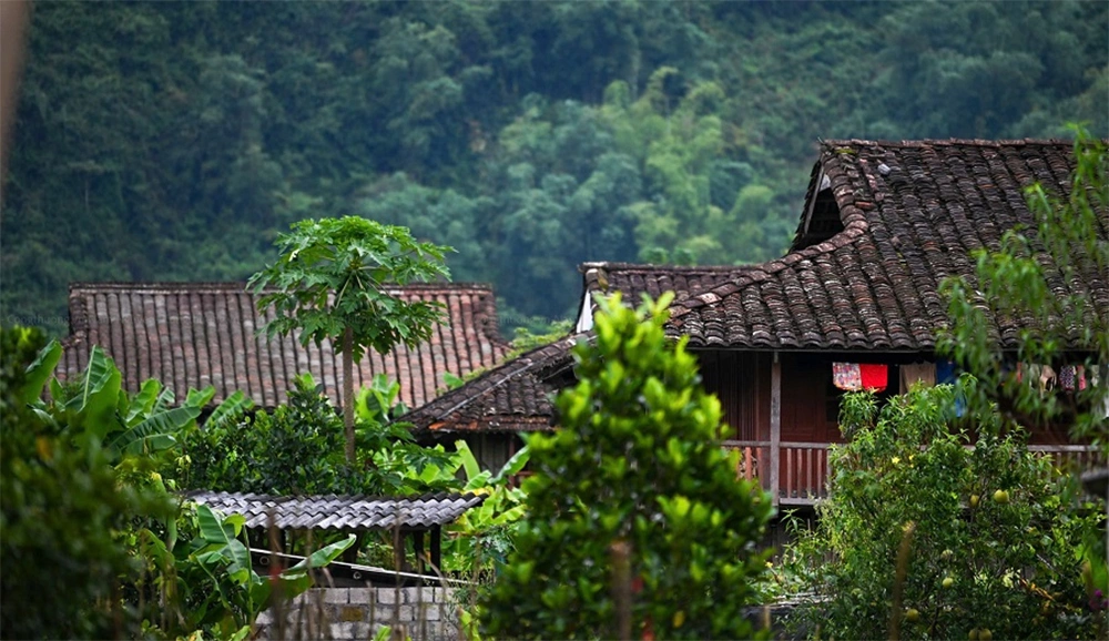 Điều đặc biệt là toàn bộ nhà sàn quay mặt về hướng nam, lưng tựa núi đá, lợp mái ngói âm dương, mỗi nhà có 3-5 gian. Bà con người Tày quan niệm, nhà quay về hướng nam sẽ giúp gia đình có nhiều sinh khí, may mắn và ấm no. Còn ngói âm dương giúp ngôi nhà mát mẻ vào mùa hè, ấm áp vào mùa đông.