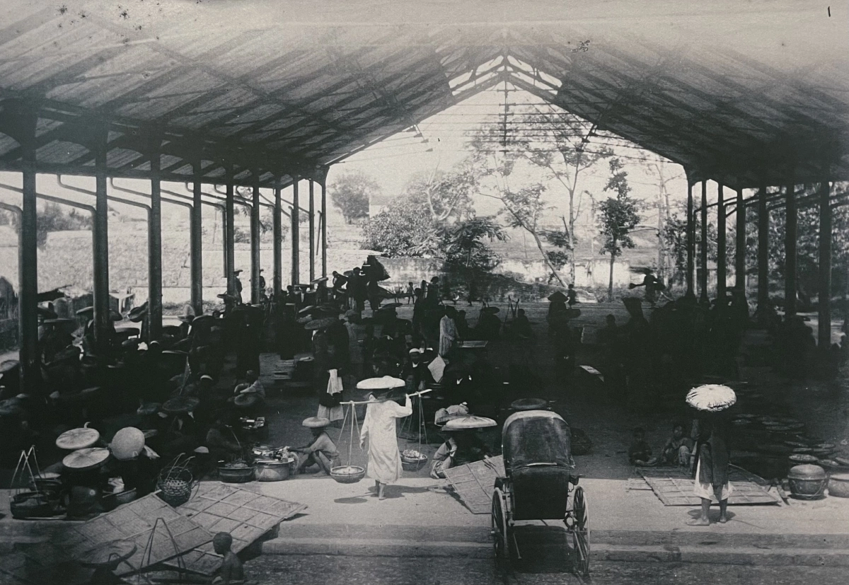 Chợ năm 1890 với hai dãy nhà khung thép mái tôn đầu tiên.