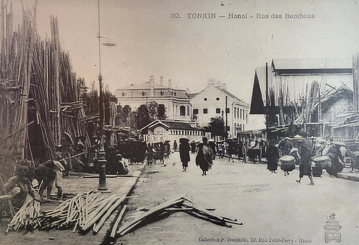 Từ xưa, Hà Nội là nơi buôn bán tấp nập nên được gọi là Kẻ Chợ. Trong hình là chợ bán tre nứa trên sông Hồng xưa. Ảnh: Trung tâm Lưu trữ Quốc gia I sưu tầm