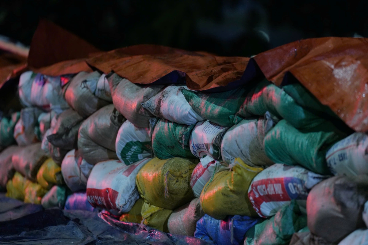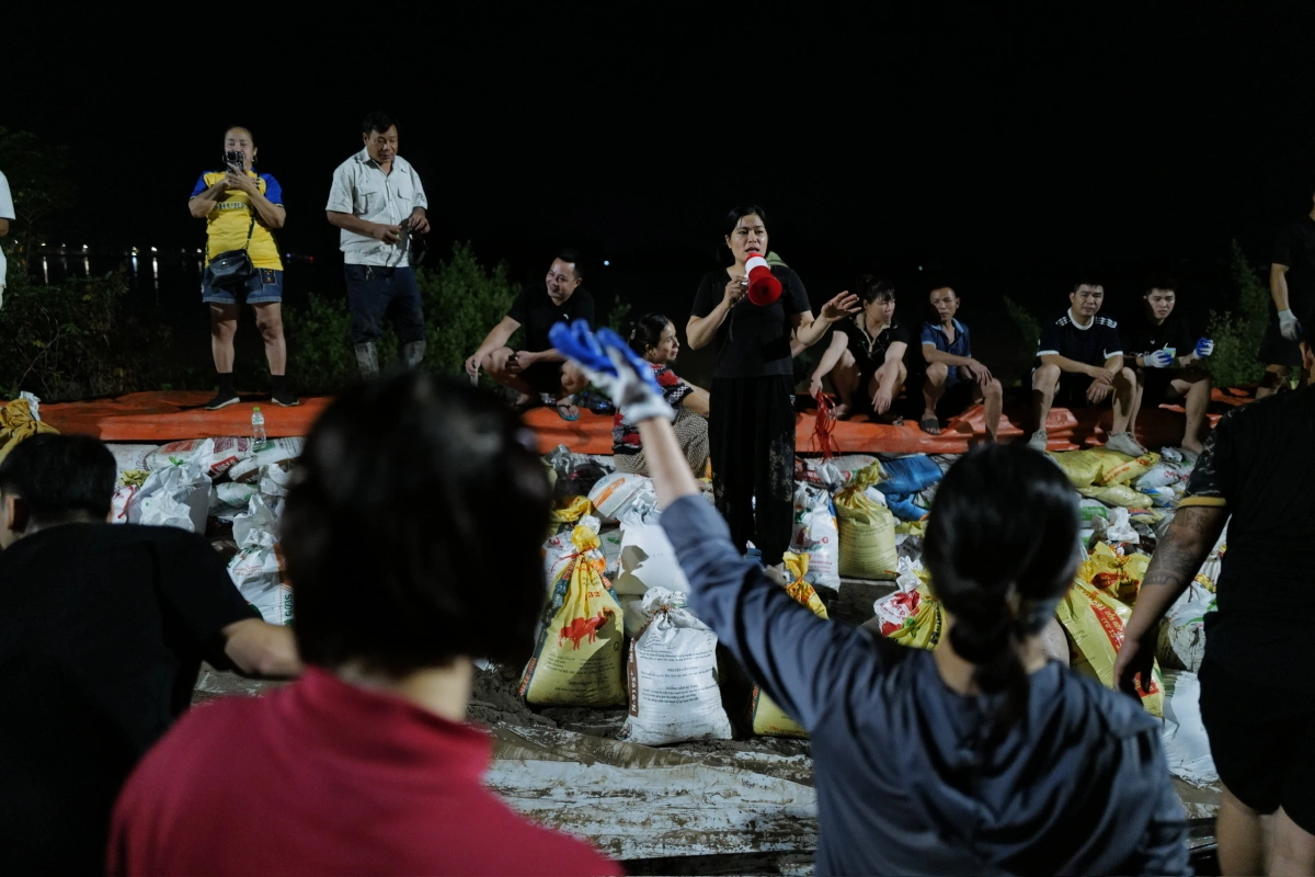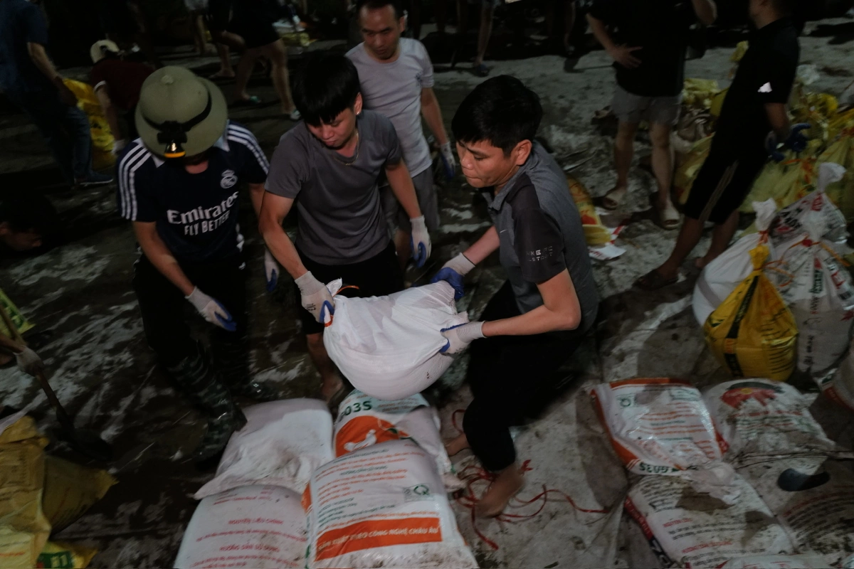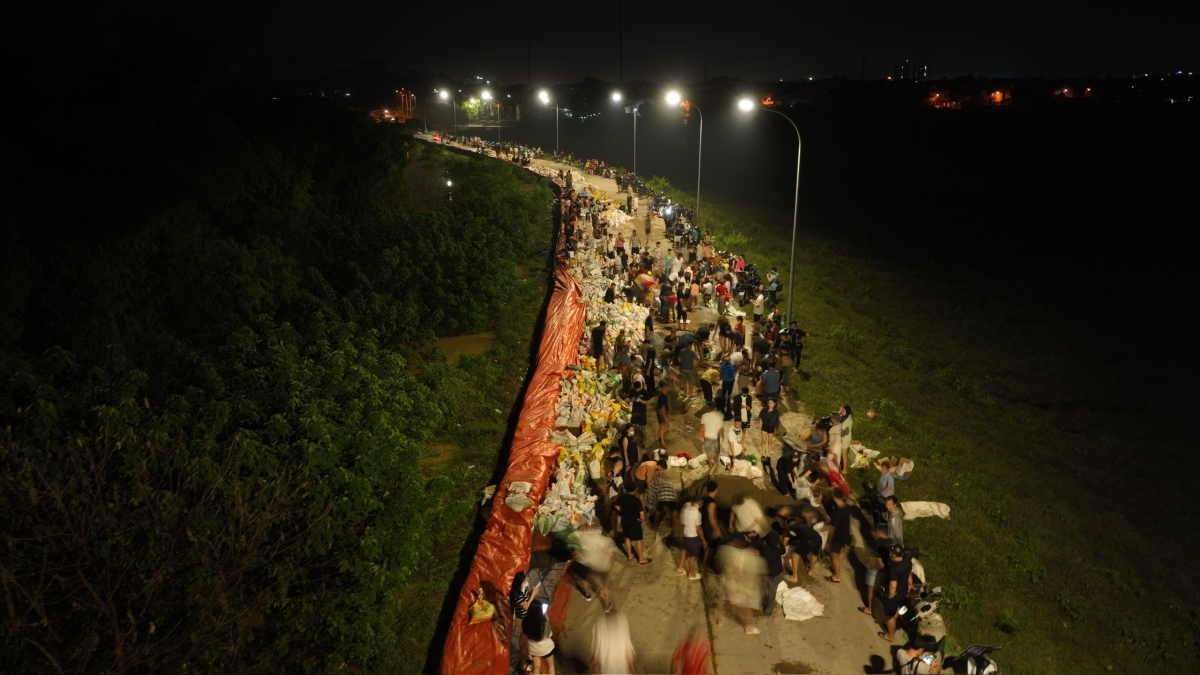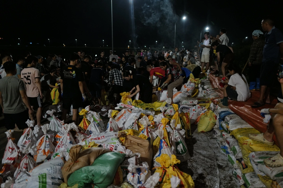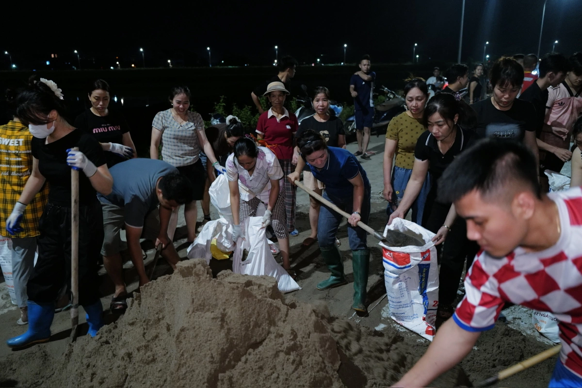 Bà Sen cho biết việc đắp đập ngăn lũ được tiến hành từ 14h ngày 8/10, tới đêm thì đã đắp được khoảng một km. Năm ngoái, sau bão Yagi, bà Sen và người dân cùng nhau đắp hơn 3 km.