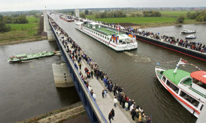 Magdeburg là cây cầu kênh lớn nhất châu Âu, cũng như đường dẫn nước dài nhất thế giới. Ảnh: Wikimapia.