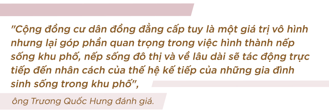 "Cao cấp ở đây là sự đồng bộ từ trong nhà ra đến bên ngoài, kết nối nhịp nhàng, hài hòa giữa các yếu tố để tạo sự tiện lợi cao nhất cho người sử dụng trên mọi phương diện, từ kết nối giao thông, sử dụng hạ tầng, dịch vụ, sức khỏe, thời gian rảnh...", ông Hưng phân tích.