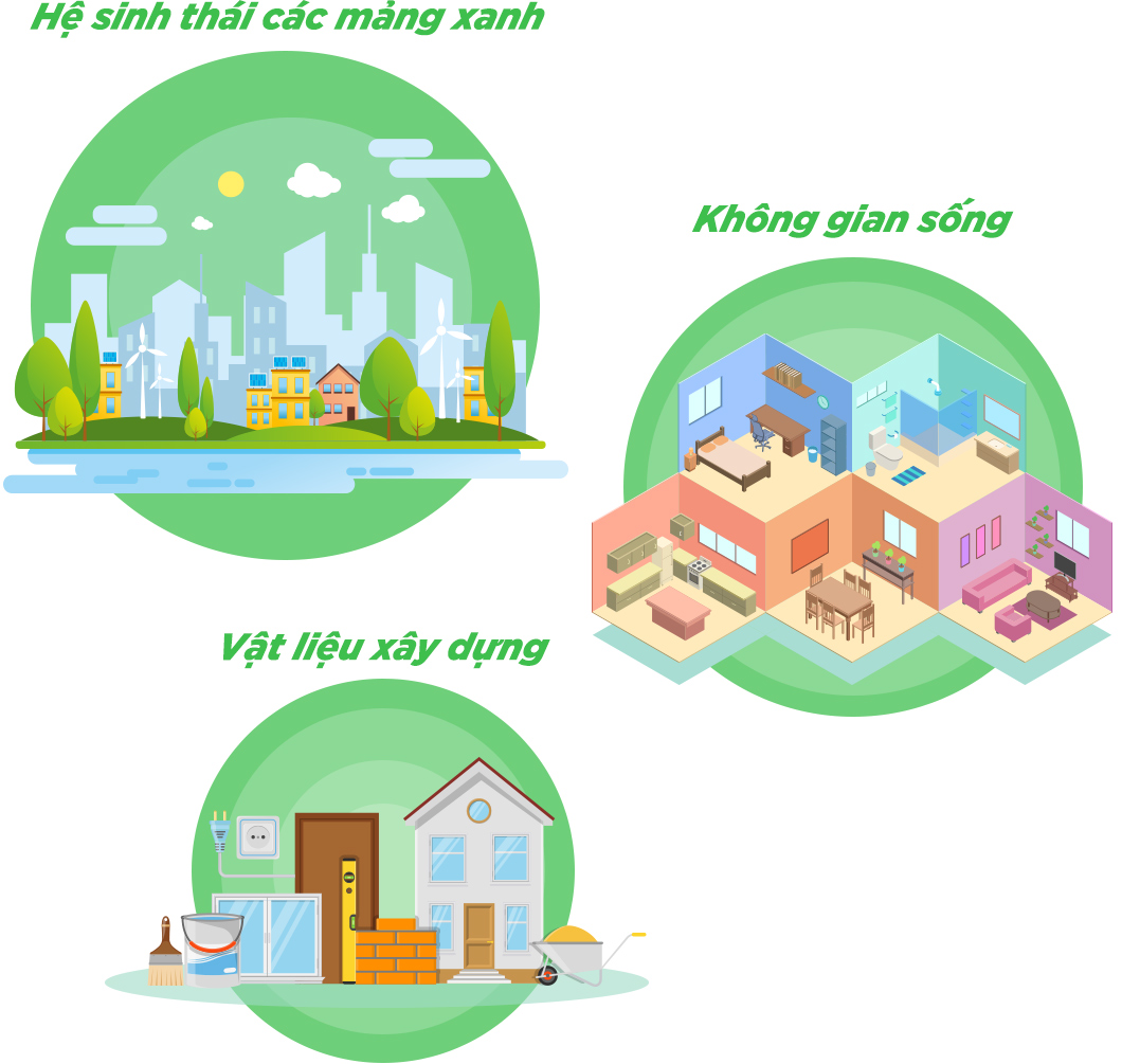 Vòng xanh thứ 2 là trong từng không gian sống. Để tránh các tác động tiêu cực của biến đổi khí hậu, các tòa nhà đều được xoay theo trục Bắc và Nam, hạn chế tối đa đối mặt với phía Đông và phía Tây. Đồng thời, khi thiết kế tòa nhà và căn hộ, kiến trúc sư đặc biệt chú ý đến sự thông thoáng, ánh sáng và tầm nhìn. Khi nhìn vào mặt bằng, mỗi một không gian quan trọng (như phòng khách, phòng ngủ) đều có tầm nhìn, sự thông gió và ánh sáng.