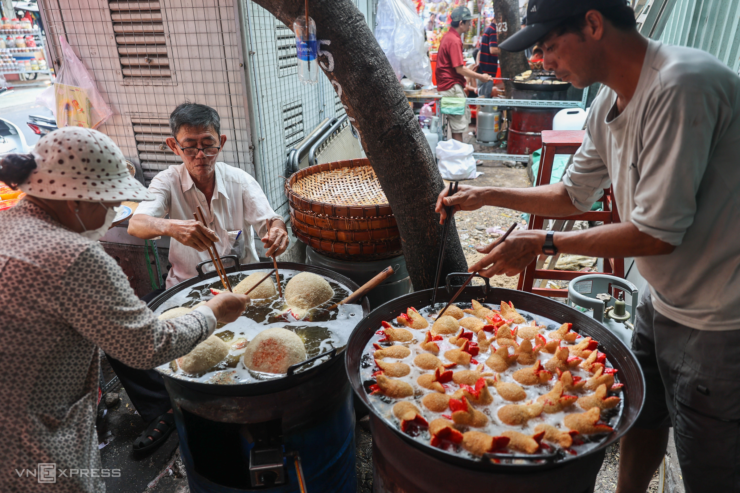 Ở gian hàng kế bên, chị Nguyễn Thị Thu Vui, quận 5, mua tám cái bánh đường có hình trái đào về cúng Tết với giá hơn một triệu đồng. "Chồng tôi người Hoa nên mấy năm nay đều ra chợ này mua sắm đồ cúng Tết", chị Vui nói.