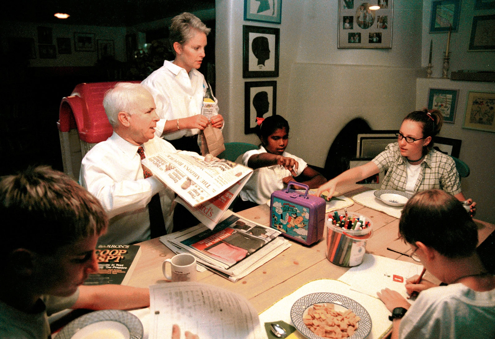 Phó tổng thống Mỹ George H.W. Bush chủ trì lễ tuyên thệ nhậm chức thượng nghị sĩ cho McCain năm 1986. Buổi lễ có sự tham gia của Cindy, vợ ông, cùng hai con.