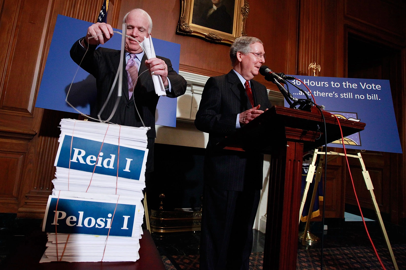 McCain và Thượng nghị sĩ Mitch McConnell phát biểu về cải cách y tế tháng 12/2009. Lúc bấy giờ, họ bày tỏ thất vọng vì phe Dân chủ không để phe Cộng hòa tham gia soạn thảo bộ luật mới.