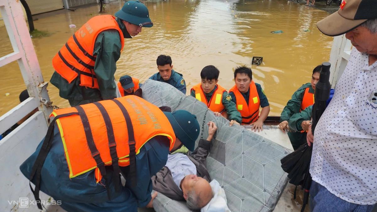 Chiều 30/10, nhận tin cụ già ở đường Phan Anh bị đột quỵ, Chủ tịch phường An Cựu đã huy động dân quân tự vệ đến hỗ trợ gia đình. Cụ ông được đưa lên thuyền, sau đó chuyển lên ôtô tải để đi cấp cứu.