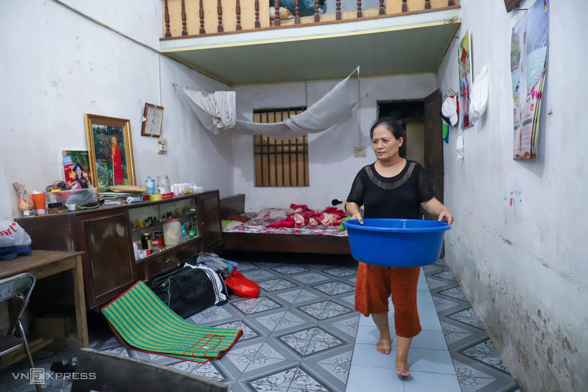 Bà Nguyễn Thị Vượng, 62 tuổi, cho biết phải bỏ bớt đồ đạc để kê giường. Chồng mất sớm, bà nuôi hai con trai, nay họ đã lập gia đình nhưng vẫn chưa thể ra riêng. Trong nhà hiện có bà, hai con dâu và ba cháu nội. Mưa thì lo mái sập, nắng thì nóng bức, ai đi học, đi làm về cũng muốn bước ra ngoài cho đỡ ngột ngạt.