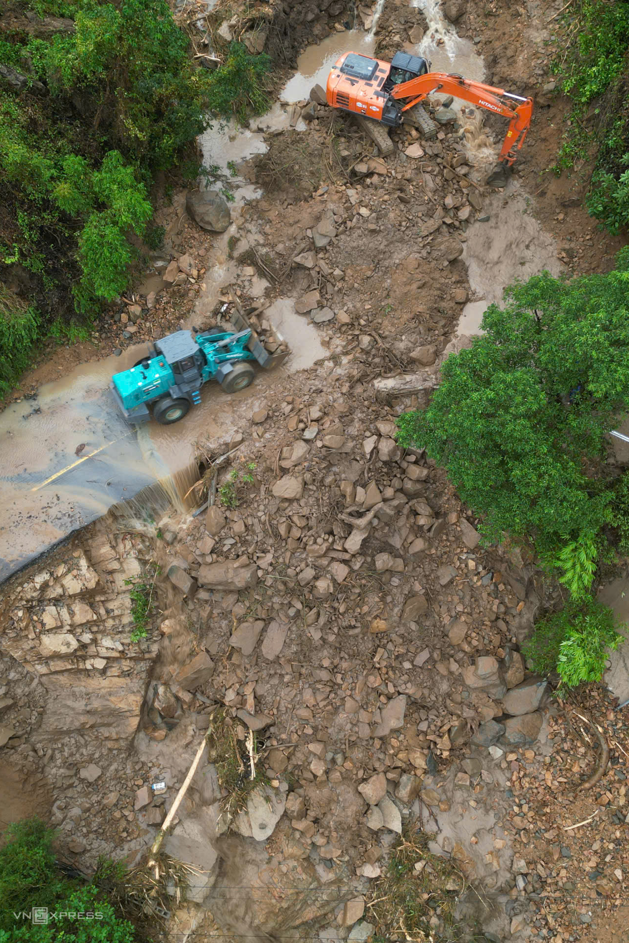 Cách đây hơn hai ngày, mưa lớn làm đất đá trên núi tràn xuống, vùi lấp lán trại đang có 10 người trú, 7 người kịp thoát thân, ba nạn nhân còn lại bị vùi lấp. Lực lượng cứu hộ tìm thấy một người tử vong, một người chấn thương. Nạn nhân còn lại hiện chưa tìm ra.