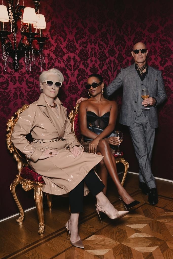 Các diễn viên Meryl Streep, Simone Ashley (giữa) và Stanley Tucci diện đồ Dolce & Gabbana từ đầu đến chân.