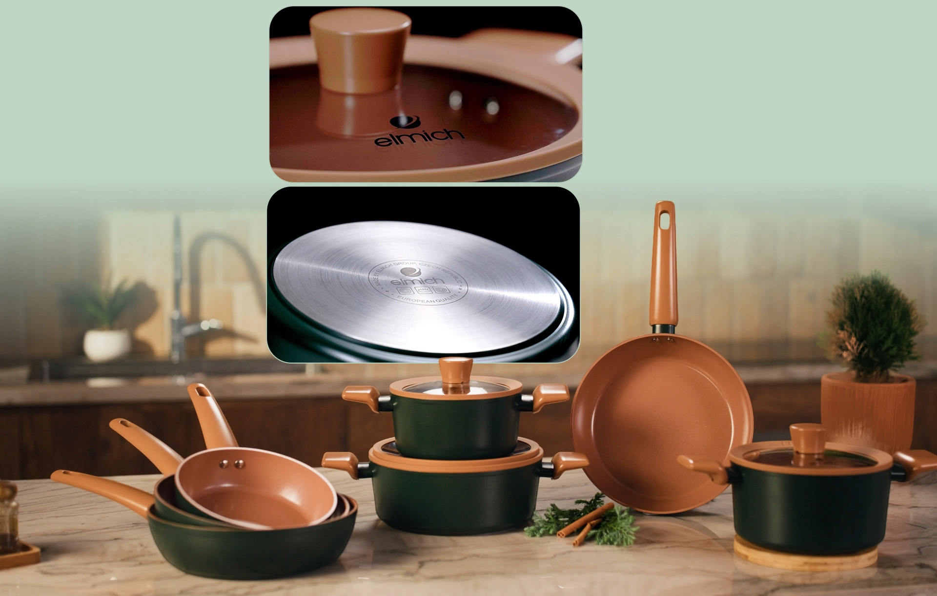 Bên cạnh đó, Elmich còn lựa chọn chất liệu ceramic với nguyên liệu từ cát, đá tự nhiên, an toàn cho sức khỏe và thân thiện với môi trường để thay thế lớp chống dính truyền thống. Lớp phủ ceramic này được kiểm nghiệm với khả năng chịu chà rửa đến 101.000 lần, bền gấp 33 lần tiêu chuẩn thông thường, đạt chứng nhận an toàn châu Âu.