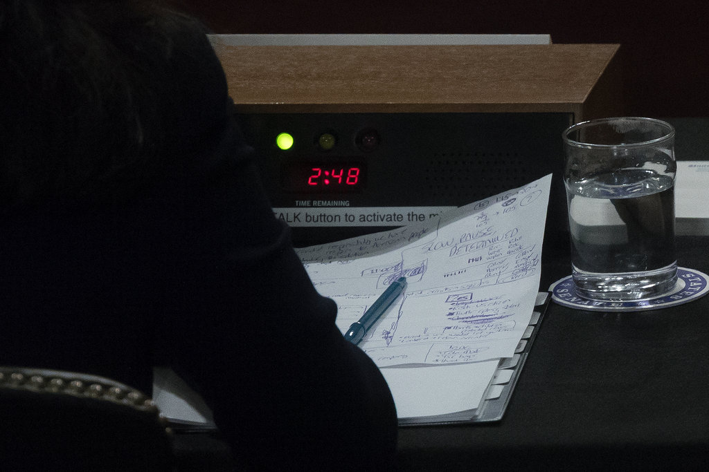 Còn bà Sandberg sắp xếp gọn gàng những bản ghi chú viết tay lên mặt bàn, như tên của từng nghị sĩ trong hội đồng, các vấn đề họ thường hỏi và quan tâm, một lời nhắc phải luôn nói cảm ơn.