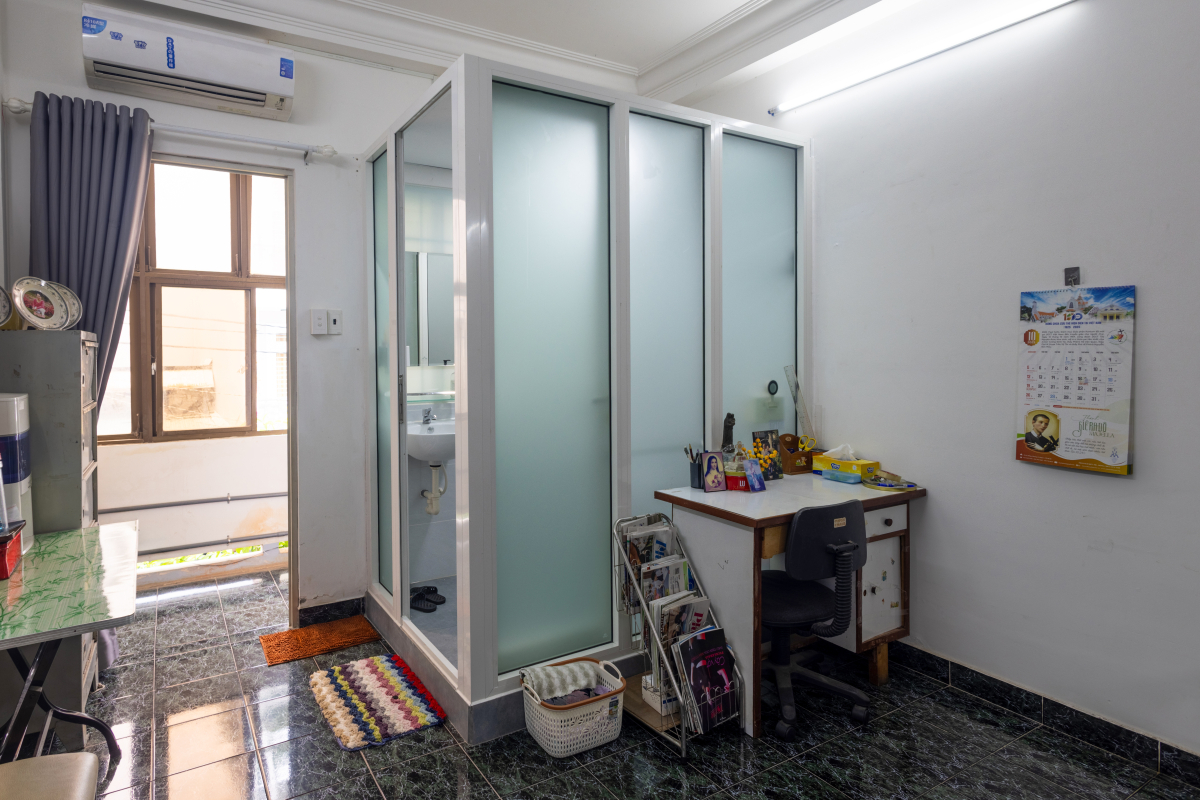 Tầng hai là nơi nghỉ ngơi của mẹ chồng bà Minh. Cụ bà năm nay gần 90 tuổi. Tầng hai không có nhà vệ sinh riêng. Mỗi khi cần sử dụng, cụ bà phải bám vịn cầu thang, từng bước di chuyển xuống tầng trệt để dùng chung với cả gia đình. Ở tuổi xế chiều, việc đi lại thường xuyên trên cầu thang dốc tiềm ẩn nguy cơ, ảnh hưởng sức khỏe.