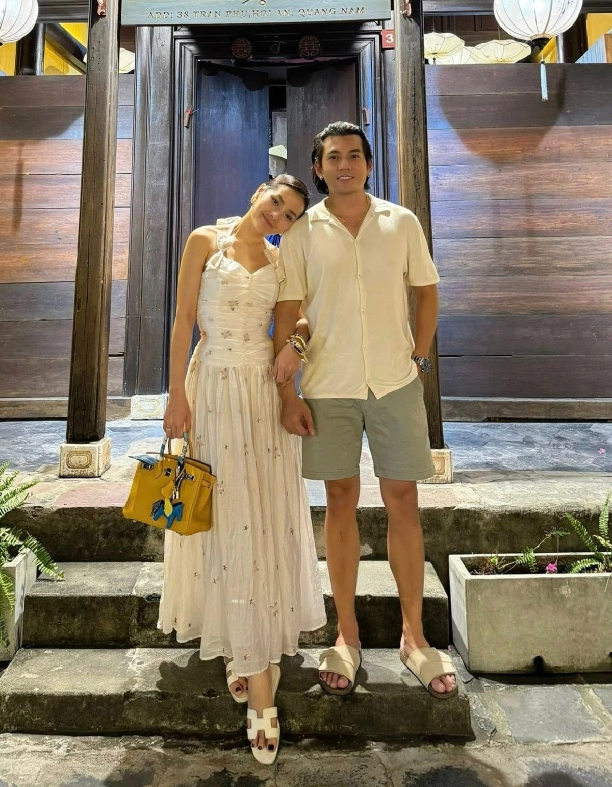Trang phục đi ăn tối của cả hai với các thiết kế cơ bản màu trung tính. Nữ diễn viên tạo điểm nhấn bằng đồ hiệu gồm dép và túi Hermes.