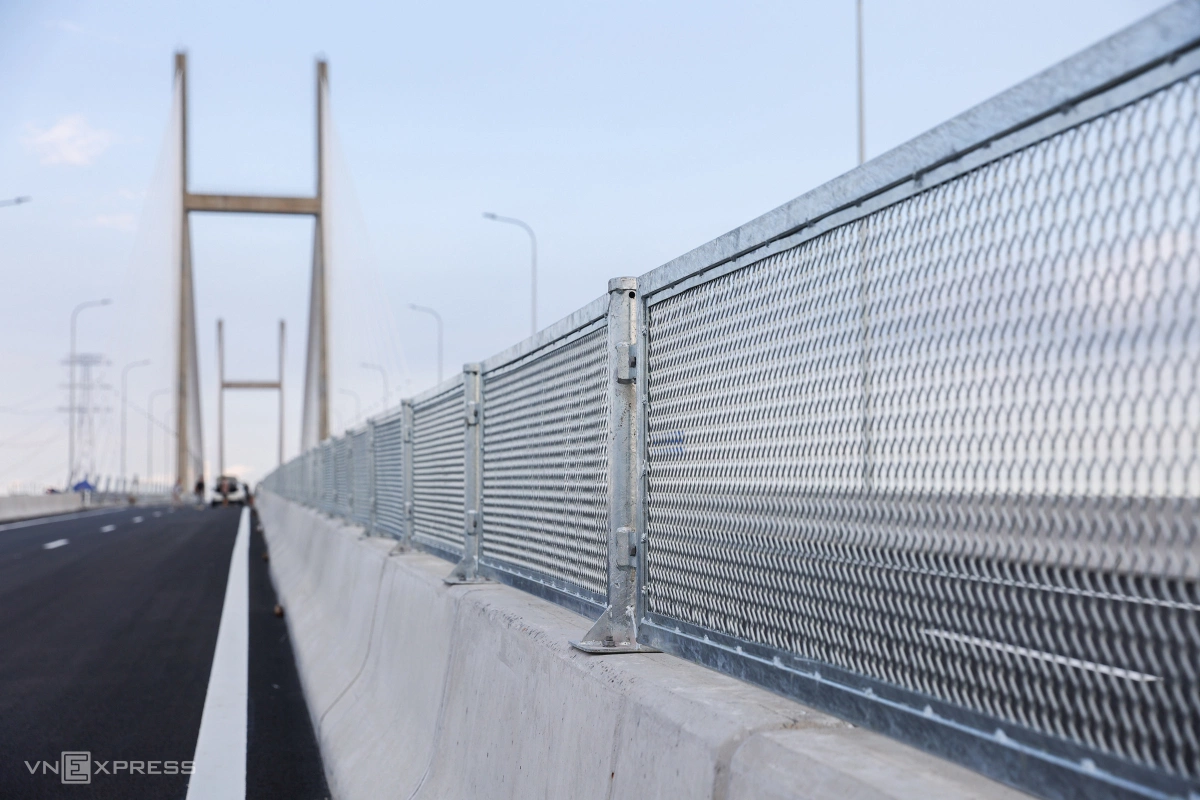 Dải phân cách cứng trên cầu được lắp đặt các tấm lưới chống chói để hạn chế tối đa các ánh sáng xe chạy ngược chiều vào tầm nhìn của người lái.
