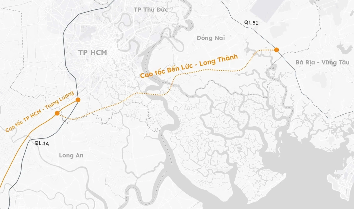Hướng tuyến cao tốc Bến Lức - Long Thành. Đồ họa: Khánh Hoàng