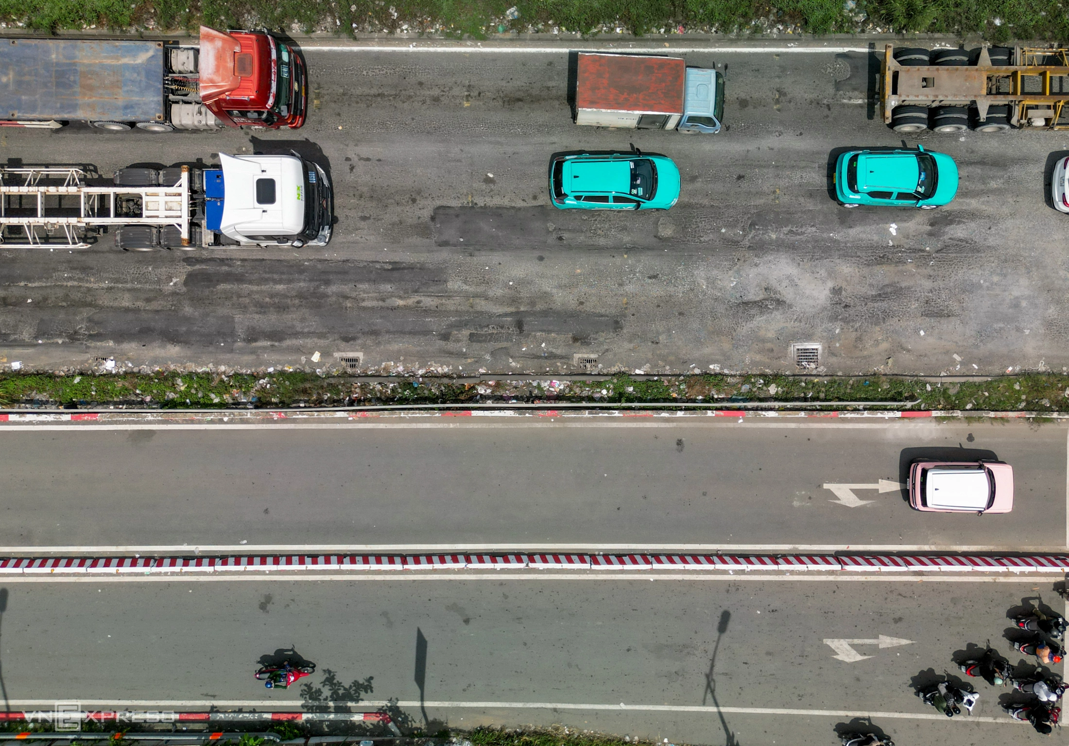 Đường vào cảng Cát Lái hư hỏng. Video: Quỳnh Trần