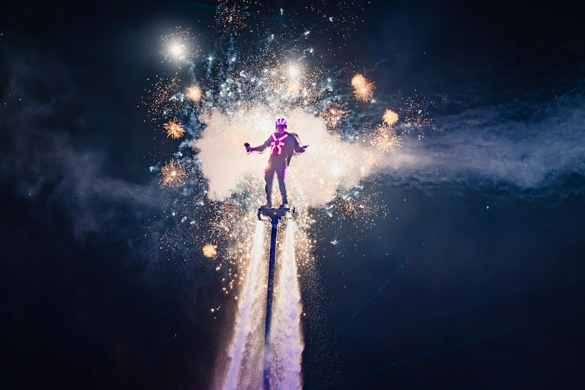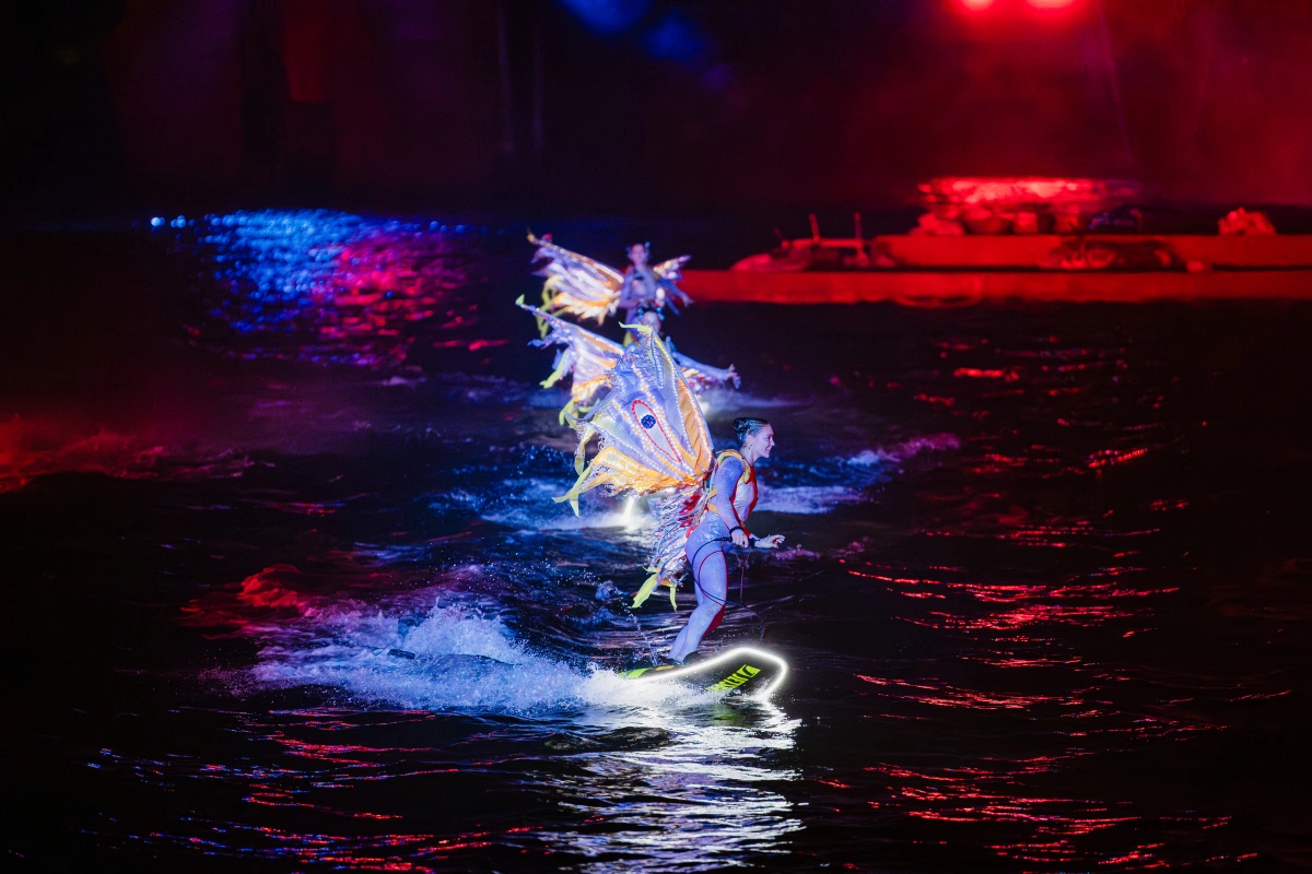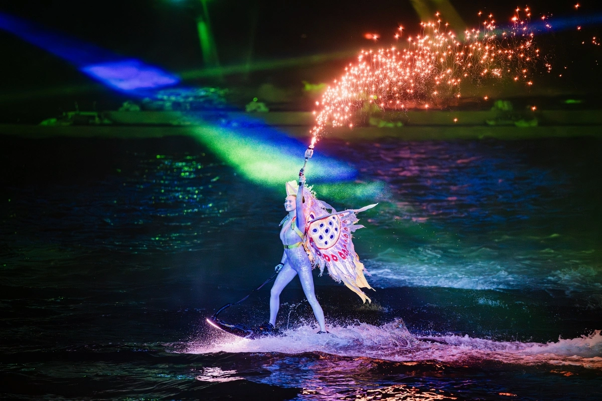Ông Jack Ellison - Giám đốc H2O Events, đơn vị sản xuất show trình diễn nước và pháo hoa với 30 năm kinh nghiệm, cho biết đây là một trong những chương trình quy mô lớn nhất thế giới mà ông từng thực hiện. “Chúng tôi đã tìm những kỹ thuật viên và vận động viên xuất sắc từ khắp nơi trên thế giới để cùng tạo nên show diễn đa giác quan này”, ông nói.
