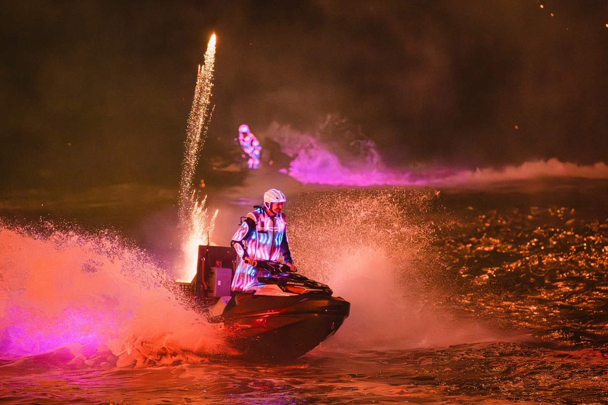 Ở phân đoạn Thiên hà ánh sáng, các vận động viên mang đến những màn đua Jetski tốc độ cao kết hợp bắn pháo hoa. Ngay sau đó là những màn nhào lộn ở độ cao 15 m so với mặt biển. Toàn bộ phần trình diễn được hòa âm, phối khí từ các bản hit quốc tế và những ca khúc Việt Nam thân thuộc như Mẹ yêu con. Tiết tấu được tính toán để khớp tuyệt đối cùng từng chuyển động biểu diễn của các nghệ sĩ.
