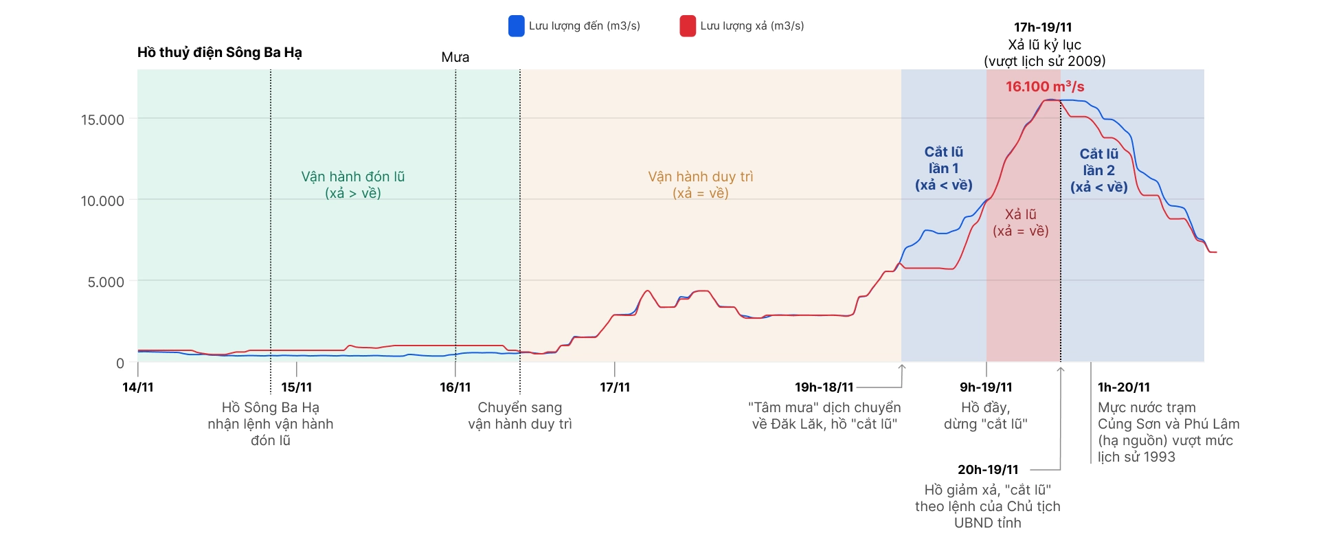 "Mức xả 16.100 m3/s vượt lịch sử, nhưng đúng quy trình được duyệt. Nếu không xả, hồ chứa có nguy cơ vượt giới hạn kỹ thuật, gây hậu quả nghiêm trọng cho cả thượng lưu lẫn hạ du", ông khẳng định.