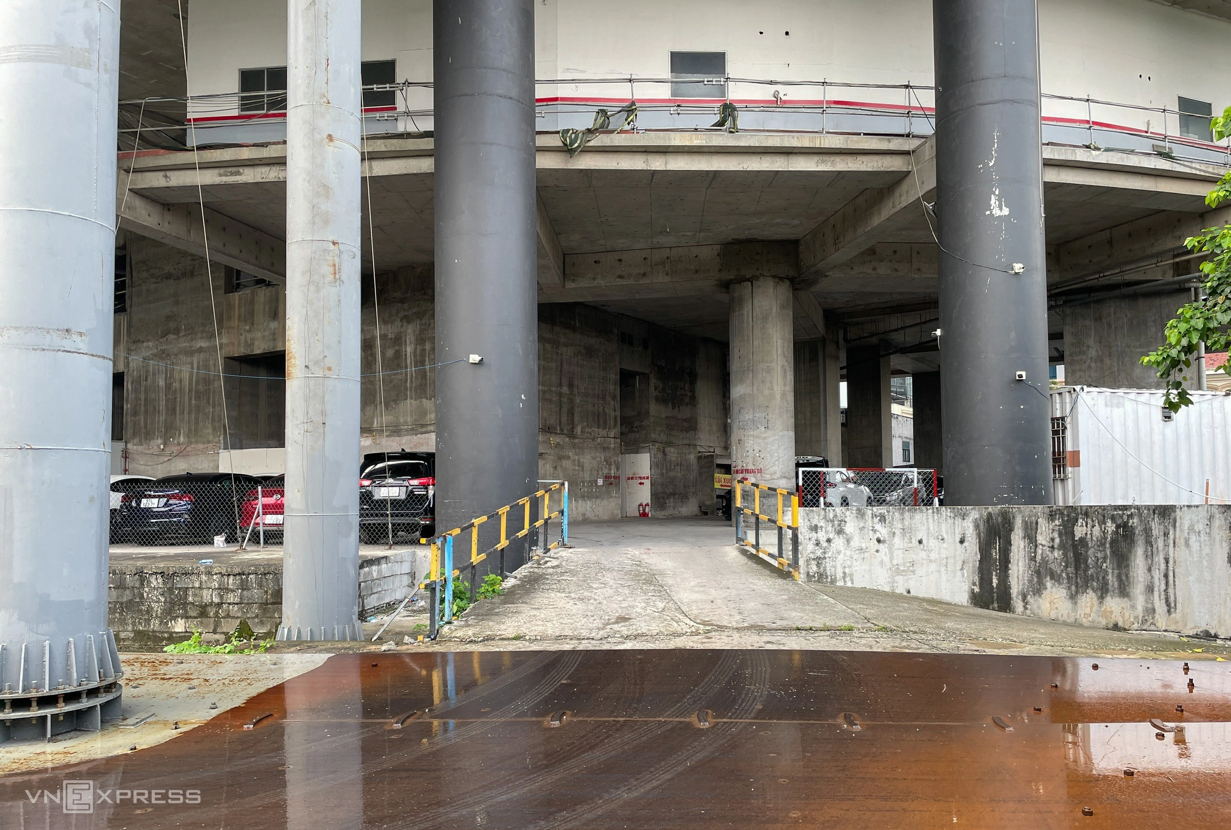 Sau 3 năm ngưng thi công, dự án như một khối bêtông thô nằm án ngữ trước chợ Bến Thành. Nhiều hạng mục bê tông xuống màu, ẩm mốc, vật liệu xây dựng ngổn ngang.