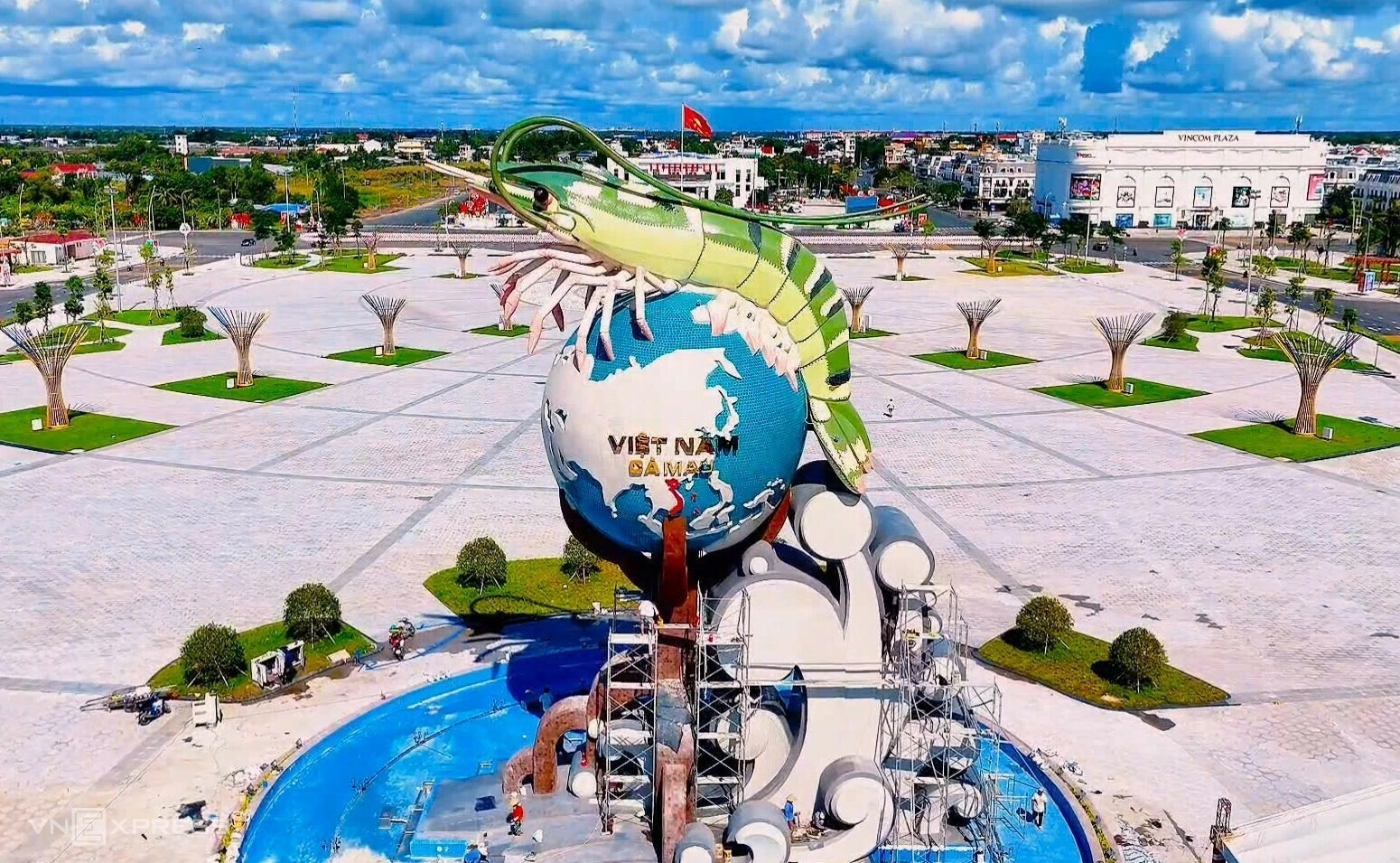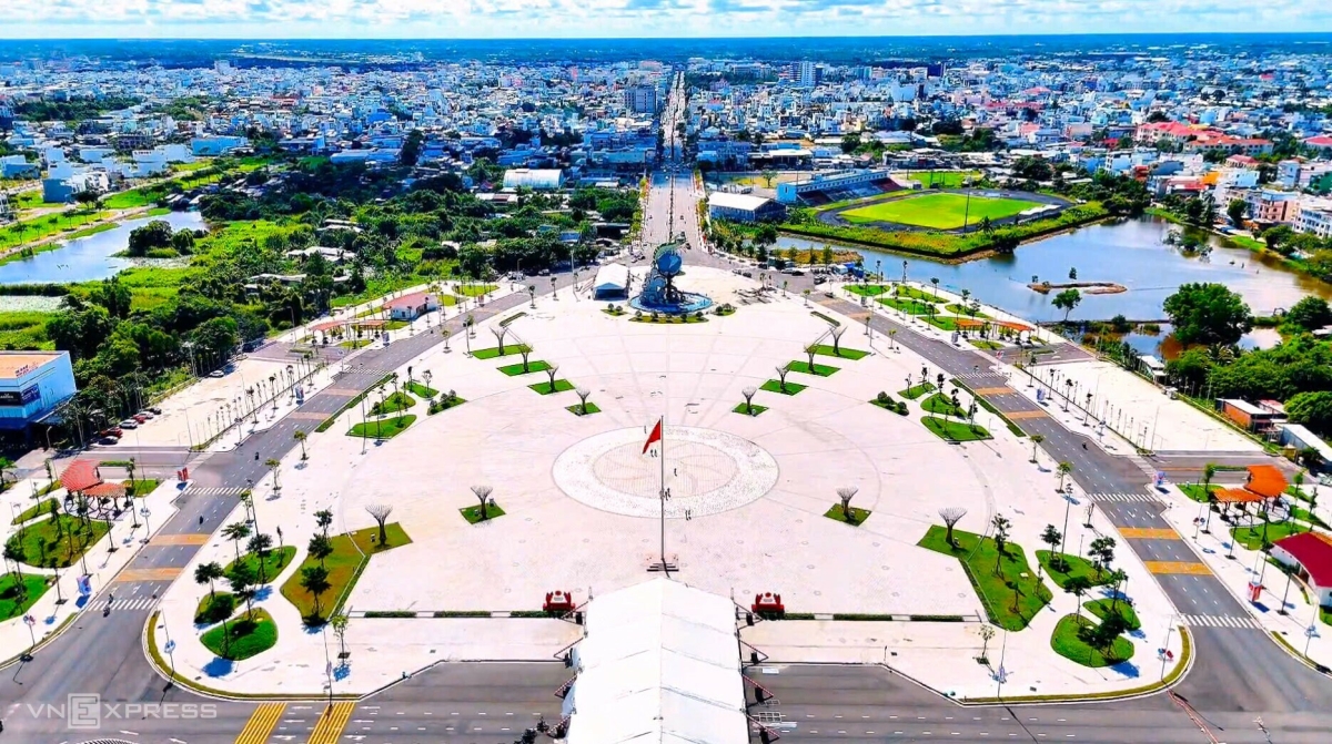 Quảng trường nhìn từ đường Phan Ngọc Hiển, giống hình ảnh giọt nước. Đây là một trong những dự án trọng điểm của tỉnh, tạo điểm nhấn cho trung tâm thành phố ở Cà Mau.