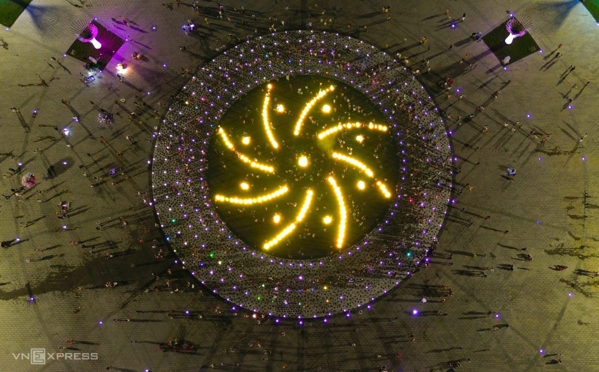 Quảng trường Phan Ngọc Hiển vào ban đêm với trình diễn nhạc nước, đèn nghệ thuật. Video clip: Chúc Ly