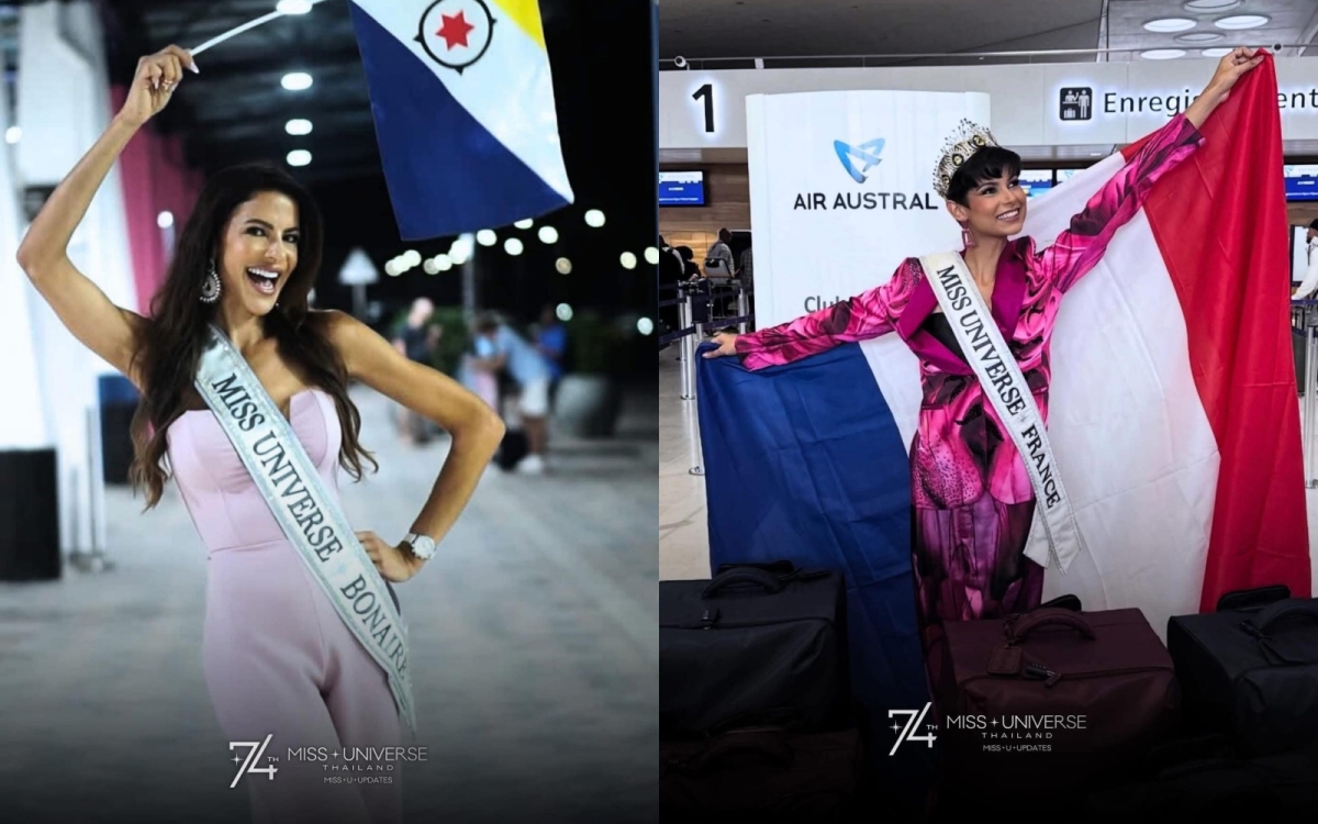 Cùng lúc, hàng chục người đẹp tới Thái Lan để bắt đầu nhập cuộc Miss Universe. Họ mang theo nhiều vali chứa trang phục, quà tặng dành cho các thí sinh.