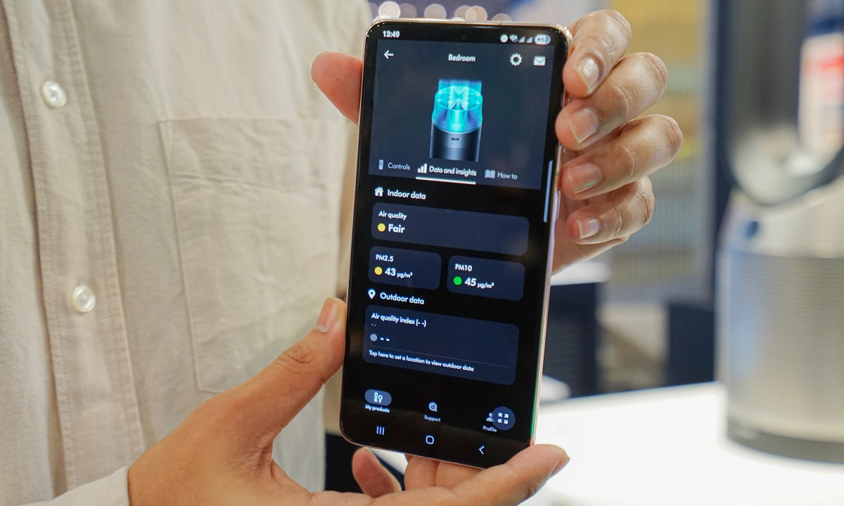 Máy lọc không khí đi kèm ứng dụng MyDyson cho phép người dùng thao tác điều khiển từ xa, điều chỉnh tốc độ luồng gió, kích hoạt các chế độ từ xa, hẹn giờ, xem chỉ báo chất lượng không khí cũng như lịch sử chất lượng không khí theo các mốc thời gian. Dù vậy, ứng dụng chưa hỗ trợ tiếng Việt.