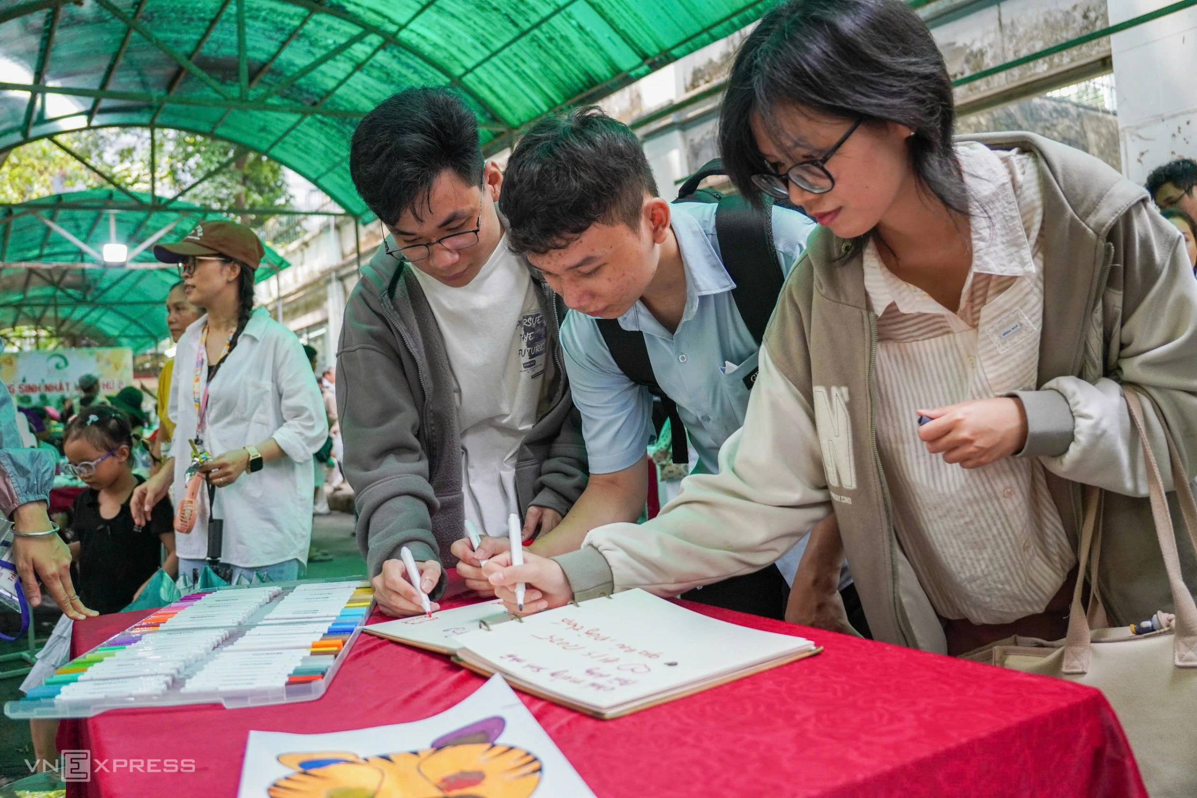 Ngô Thái, 19 tuổi, ở quận 7, cho biết đây là lần đầu tiên được tham dự sinh nhật của hổ. Nam du khách cùng nhóm bạn đã hát vang ca khúc mừng sinh nhật hai tuổi của hai cá thể hổ Bình và Dương.