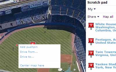Một số công trình và địa danh nổi tiếng được đánh dấu bằng biểu tượng ghim màu đỏ. Nếu đăng nhập vào trang Live Search bằng địa chỉ hotmail, người sử dụng có thể lưu lại danh sách địa danh ghé thăm, chèn ghi chú, chia sẻ với bạn bè và di chuyển tới đó nhanh hơn.