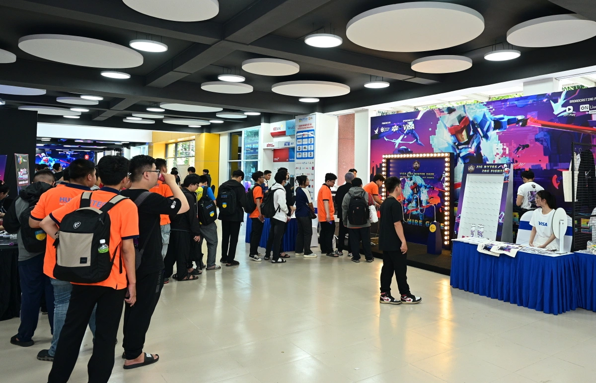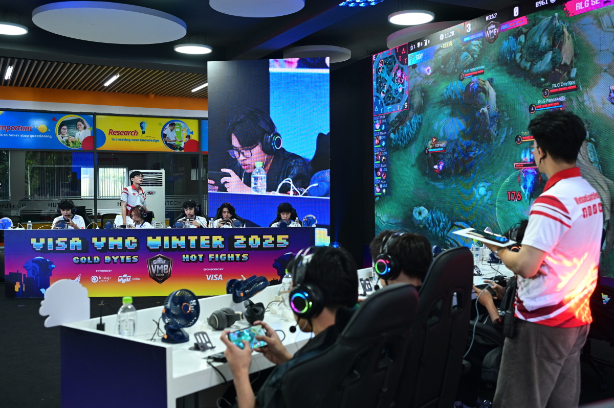 Ngày thi đấu đầu tiên của vòng chung kết Visa VMC Winter 2025 tại Đại học Hutech diễn ra sôi động, với hàng trăm khán giả trải nghiệm gian hàng, theo dõi hai trận chung kết nhánh.