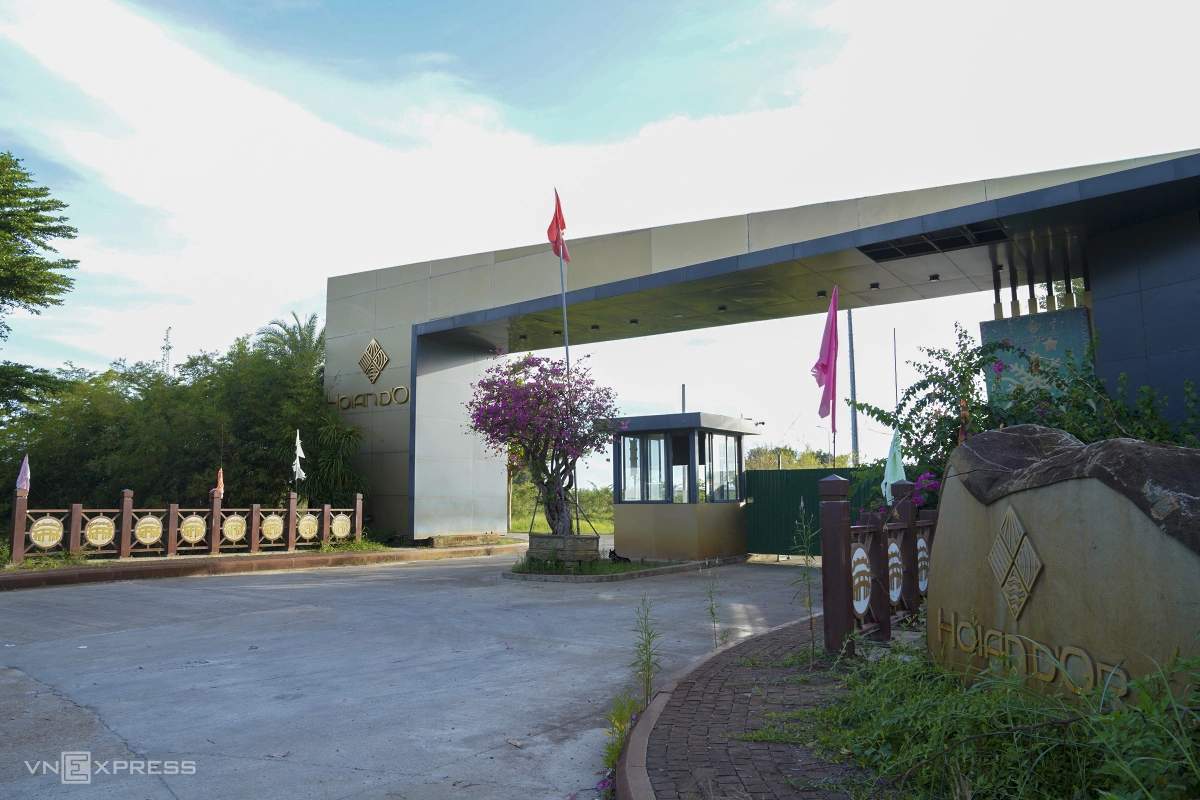 Cổng vào khu du lịch sinh thái Hoian d’Or có bảo vệ trông coi, nhưng cũng thường xuyên rơi vào cảnh vắng lặng do không có hoạt động bên trong.