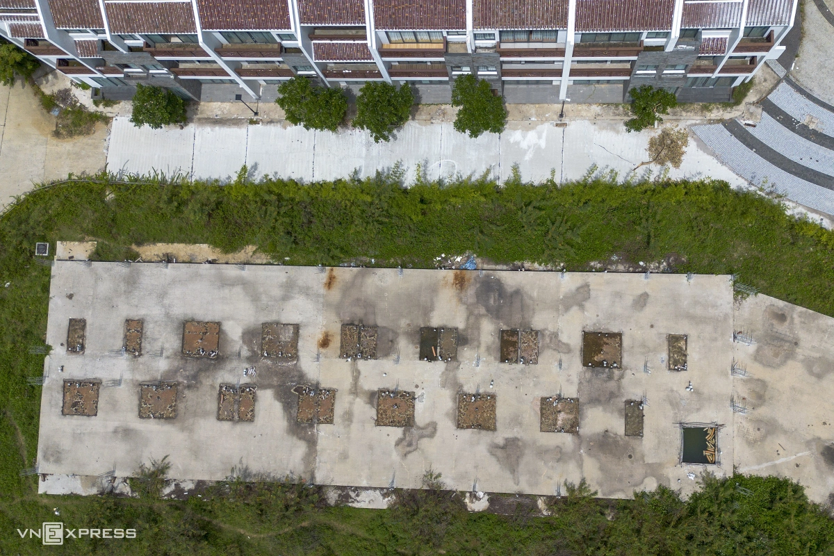 Cạnh khu vực đã xây xong phần thô và lợp mái, còn một số khu vực đã bỏ móng nhưng dừng thi công nhiều năm qua.