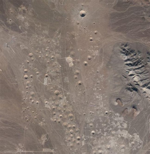 Toàn cảnh Yucca Flat. (Để xem chi tiết, gõ "Nevada Test Site Area 3, Yucca Flat, Nye, Nevada" vào phần tìm kiếm của Google Maps). |