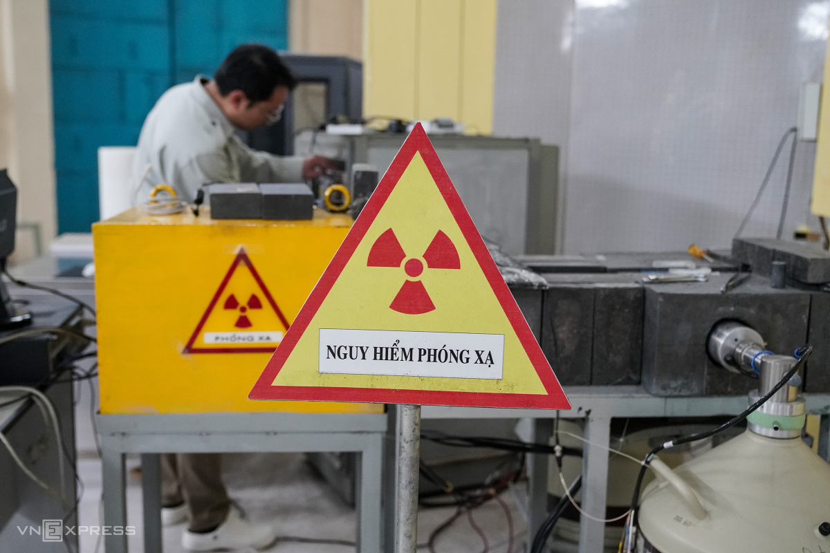 Biển cảnh báo được đặt trong khu vực lò phản ứng hạt nhân Đà Lạt, nơi nhiều vị trí đều gắn biển tương tự để nhắc nhở an toàn bức xạ cho nhân viên làm việc.